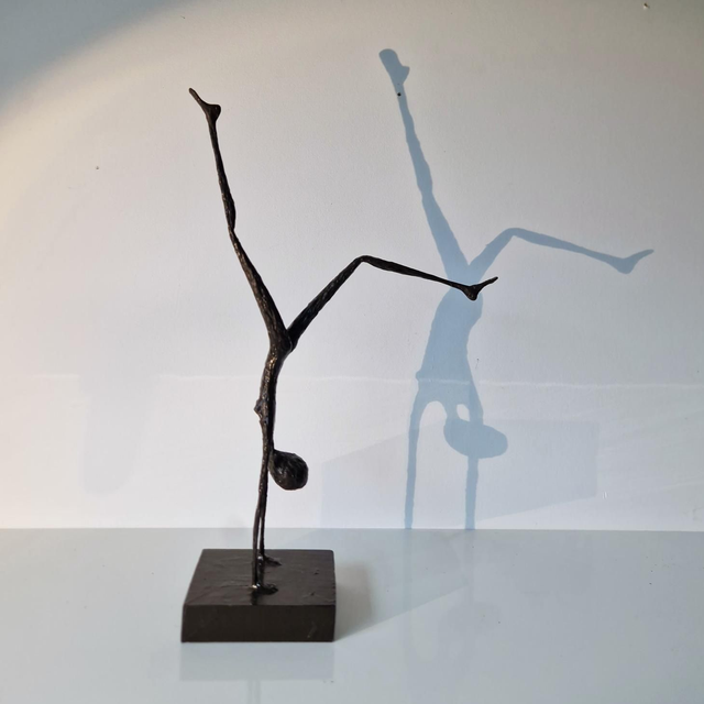 Sculpture en papier, métal et résine naturelle sur socle en bois.